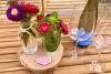Auf der Terrasse steht für Sie ein Strandkorb mit Tisch und Stühlen bereit.