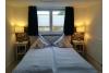 Aufgeteilt ist die Ferienwohnung in vier Schlafzimmer, einen großzügigen Wohnbereich und zwei Badezimmer mit Dusche, WC und Fön. Zwei der Schlafzimmer sind mit Doppelbetten ausgestattet, die beiden anderen sind Einzelschlafzimmer. In einem befindet sich zusätzlich HD-TV.